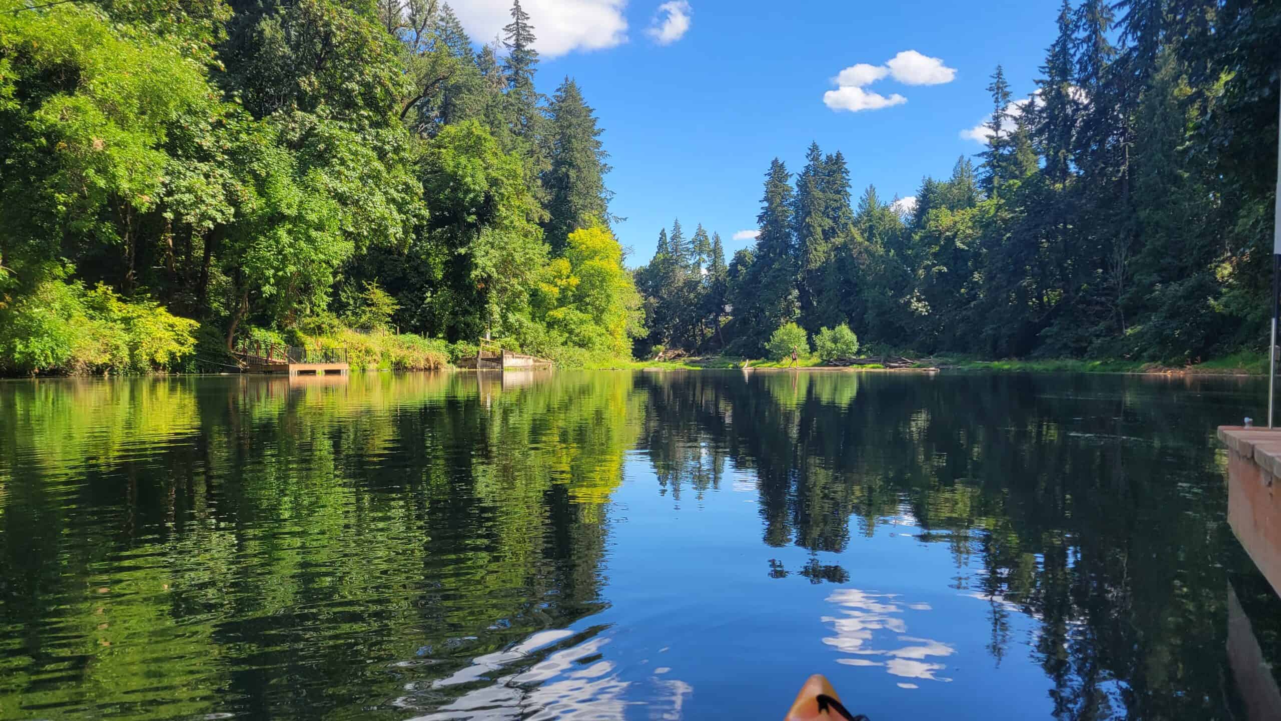 La Tualatin River Navigation and Manufacturing Company proyectó un sistema de dos canales para transportar mercancías desde el valle del Tualatin hasta el río Willamette. El primer canal iba desde el río Tualatin (milla fluvial 6,7) hasta el extremo oeste del lago Sucker (llamado Waluga por los clackamas, que significa "cisne salvaje"). El lago Sucker se conoce ahora como lago Oswego. El segundo canal con esclusas desde el lago Oswego hasta el río Willamette nunca llegó a construirse.