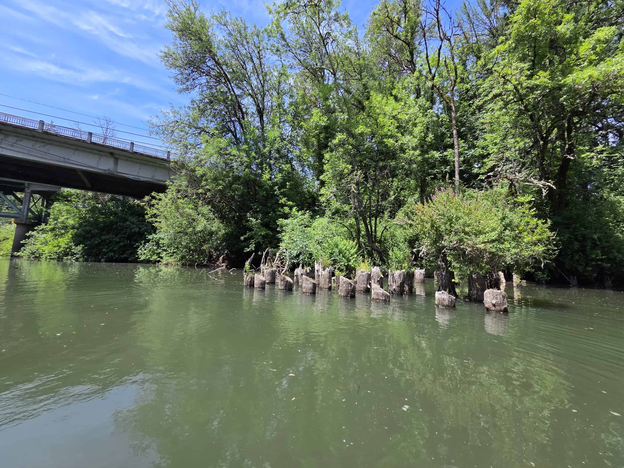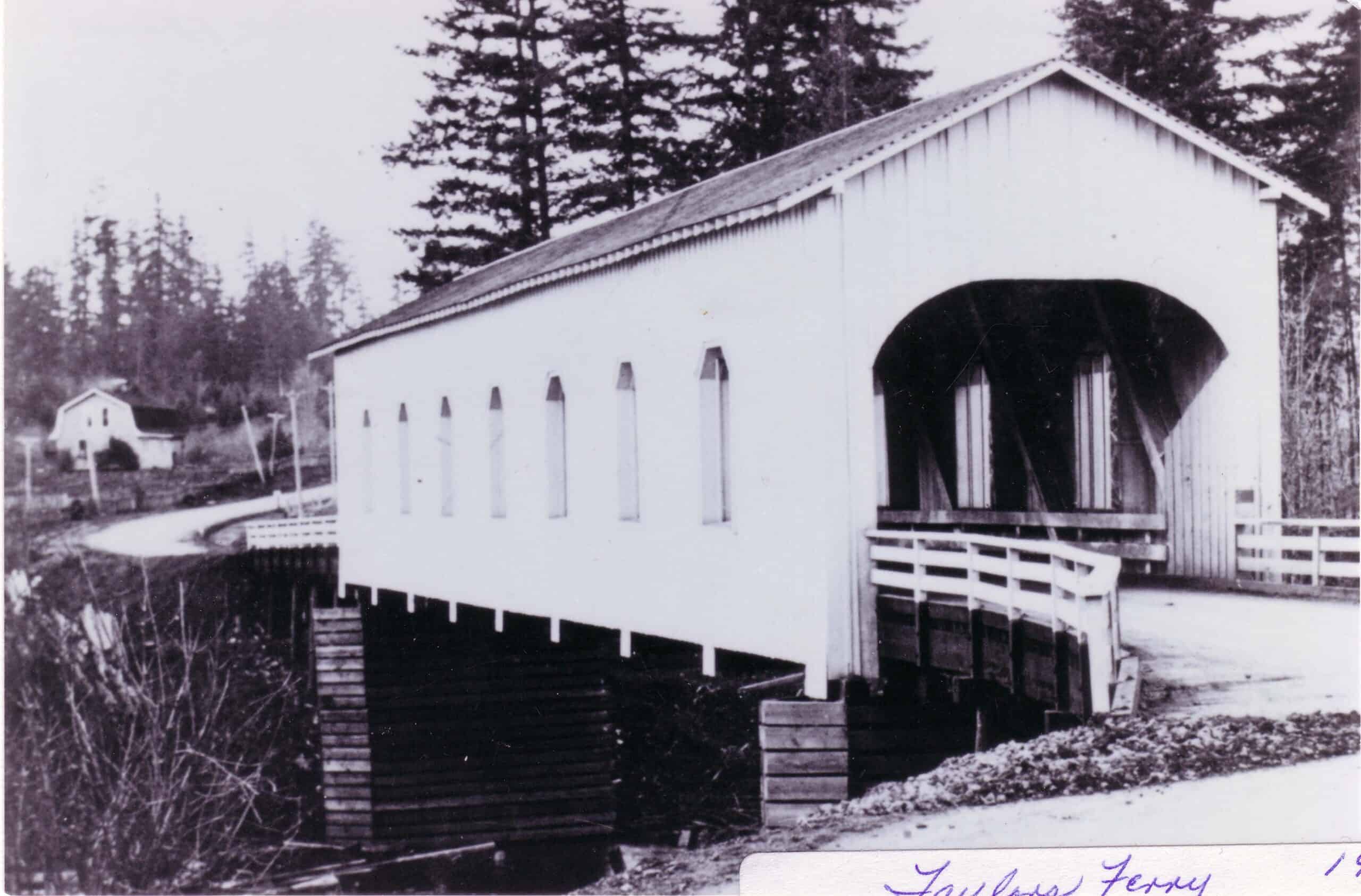 A mediados de la década de 1850, un transbordador operado por John A. Taylor proporcionaba el único cruce seguro del río. Taylor emprendió el Camino de Oregón desde Wisconsin en 1852 con su esposa y sus tres hijos pequeños. Tras conseguir una donación de 320 acres a lo largo de este tramo del río, instaló rápidamente un transbordador y estableció una carretera entre Portland y Dayton llamada Taylor's Ferry Road. Taylor explotó el transbordador durante varios años antes de construir un puente de peaje a finales de la década de 1860.