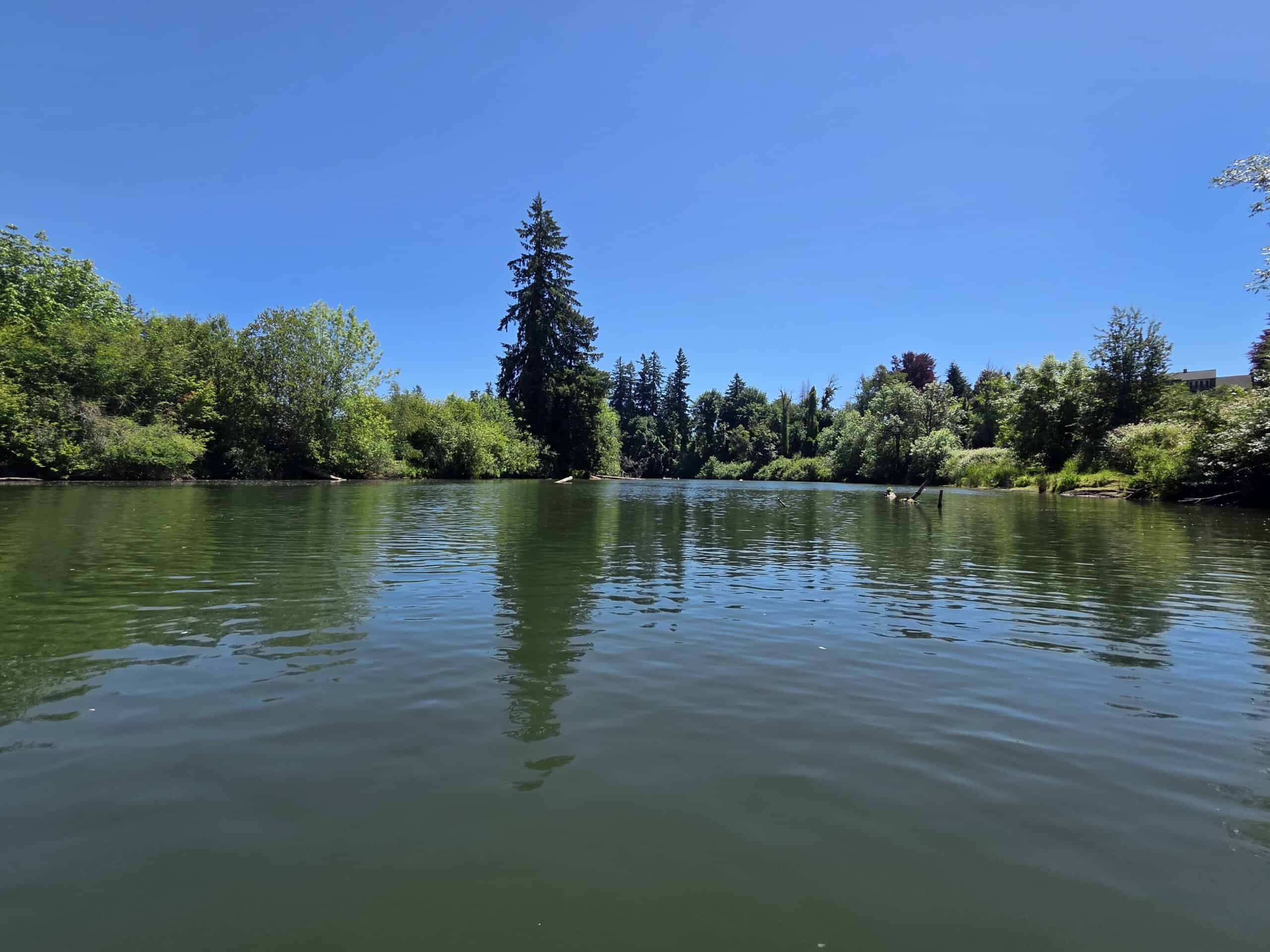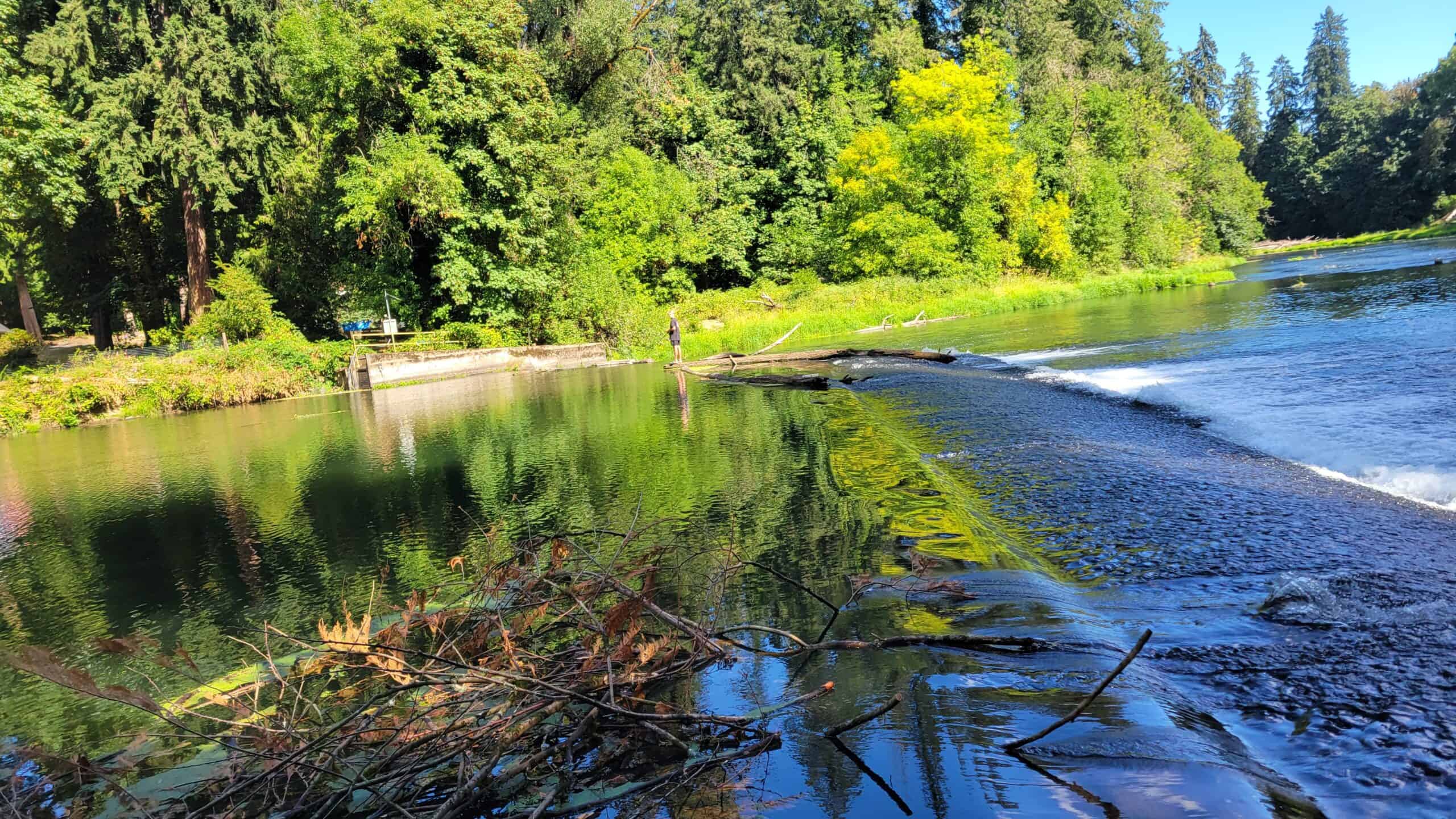 La piscina de 6 metros de profundidad de este lugar se conoce como Stafford Pool. La piscina Stafford se encuentra en un río de dos millas de largo embalse creado por el Lago Oswego Corp. en la milla 3,4 del río. También en este lugar es la confluencia Athey Creek en la orilla derecha.