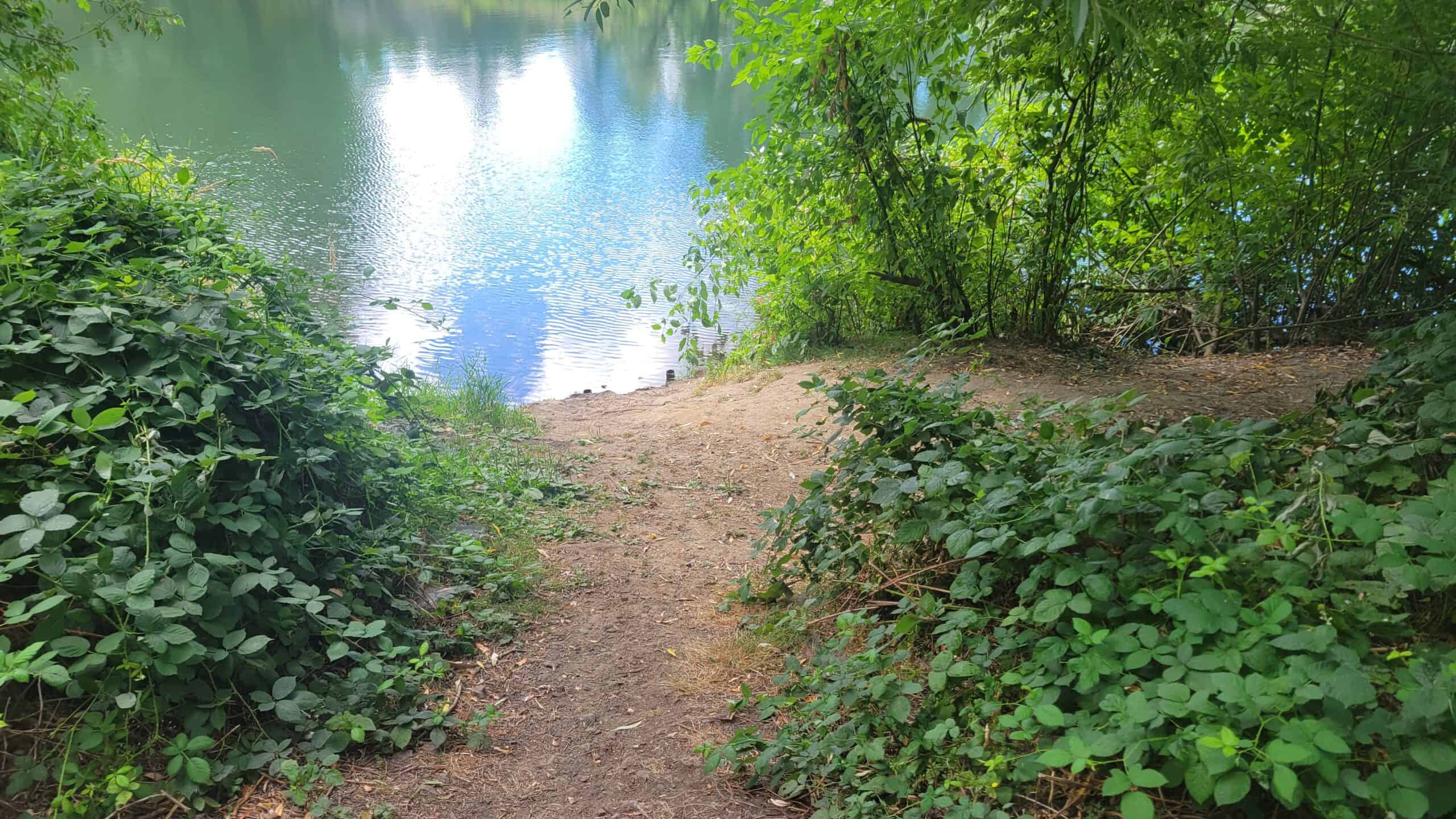 Sendero de tierra/césped de 9 metros desde la zona de aparcamiento hasta el acceso de tierra a la orilla del río. La orilla del río es resbaladiza cuando está embarrada. Compruebe el estado de la orilla antes de descargar la embarcación.