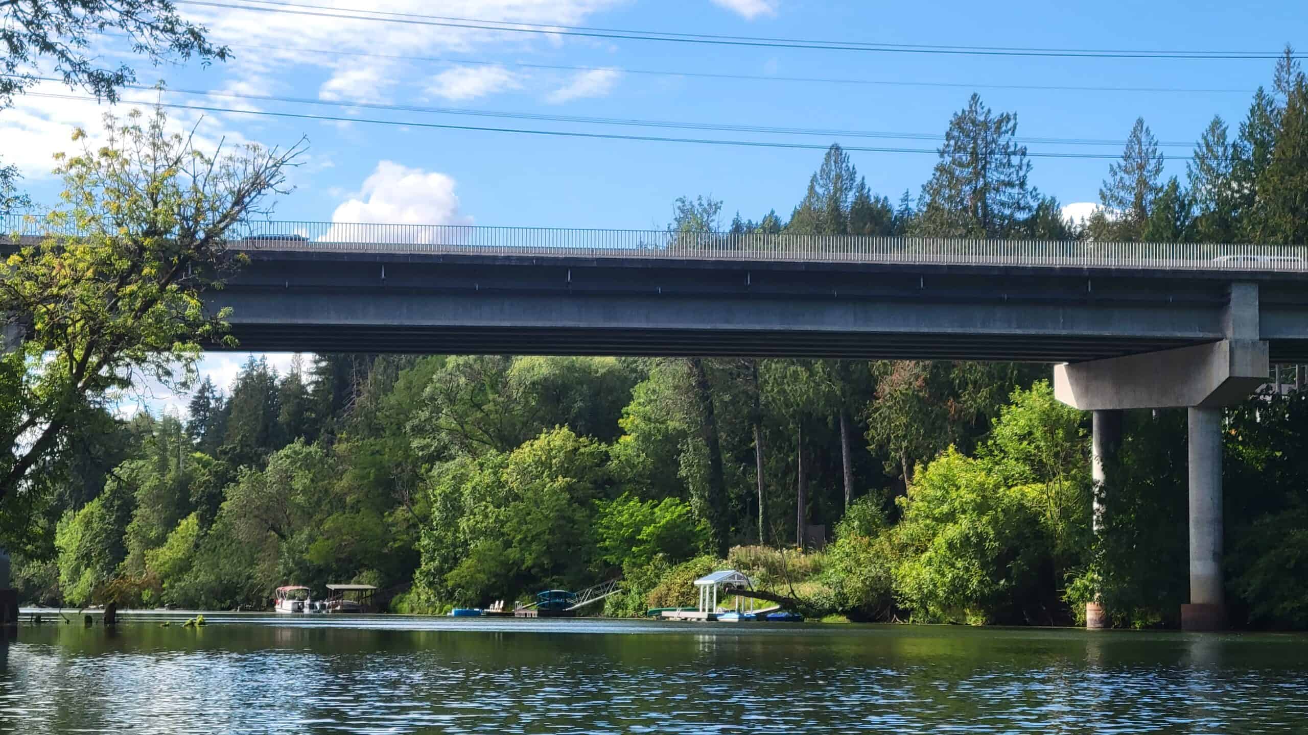 La presa de Lake Oswego Corp. Diversion Dam (River Mile 3.4) está a 1,9 millas (1 hora de remo) río abajo. La presa es difícil de ver desde el lado río arriba y no tiene señales de advertencia. La presa es peligrosa e intransitable.