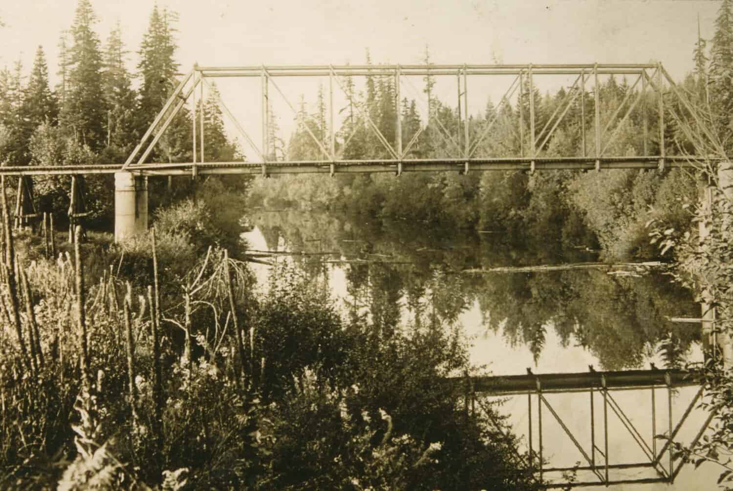 Portland & Willamette Valley Railway operated a narrow gauge (3 feet wide) railroad line between Dundee and Portland starting in 1886. This railroad used a right-of-way purchased from John Sweek on the Tualatin River’s west bank opposite Bridgeport. Profiting from the sale, Sweek took advantage of the railroad’s location and platted a town around the depot. He called the new town Tualatin. In 1892 the railroad line was leased to Southern Pacific who converted the line to standard gauge (4 feet, 8.5 inches wide). In 1997, Southern Pacific merged with Union Pacific who now owns these tracks. Credit: Tualatin, Once Upon a Time